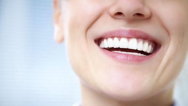 kelihatan, tidak goyang, tidak terdapat plak, warna gigi putih